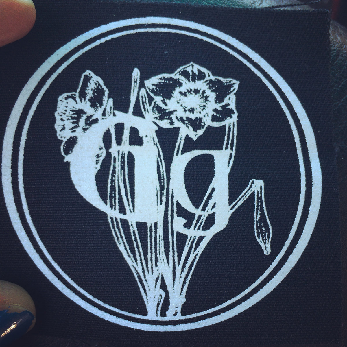Art Nouveau inspired logo in white ink on black square canvas patch. Measures 3"x3". High quality screenprint, matte cured ink.